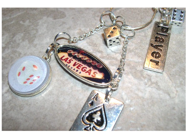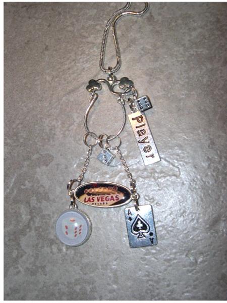 Are you a player? This fun gambling necklace will surely bring you luck! Silvertone. 24"L